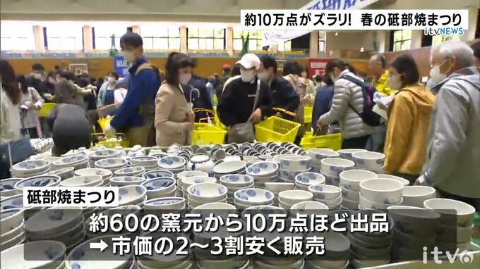 孫に、じいじばあばに…お値打ち砥部焼10万点ずらり 春の「砥部焼まつり」盛況 2023年4月15日(土) 17:58 国内 砥部焼をお得な価格で販売するイベントが15日から愛媛県砥部町で始まり、多くの人で賑わっています。今回で38回目となる恒例の「砥部焼まつり」。初日の15日は、午前9時のオープンと同時に大勢の人が詰…