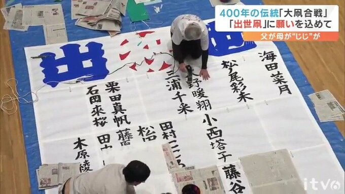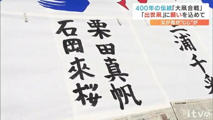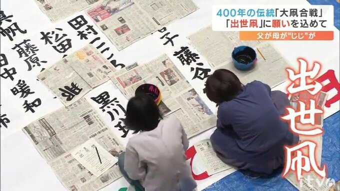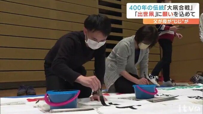 愛媛県の無形民俗文化財で400年の伝統を誇る「大凧合戦」の開催を前に16日、新生児たちの名前が「出世凧」に書き入れられました。パパ、ママ、じいじ、ばあばが一筆に込めた願いとはー。