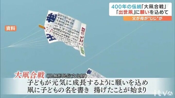 愛媛県の無形民俗文化財で400年の伝統を誇る「大凧合戦」は、生まれてきた子どもが元気で健やかに成長するようにとの願いを込め、凧に子供の名前を書いて空高く舞いあげたことが始まりとされています、