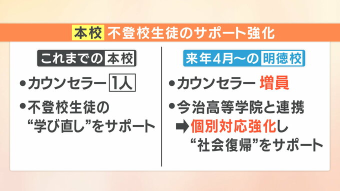 もう1つの「明徳校(現・本校)」では、不登校だった生徒たちのサポートを強化します。