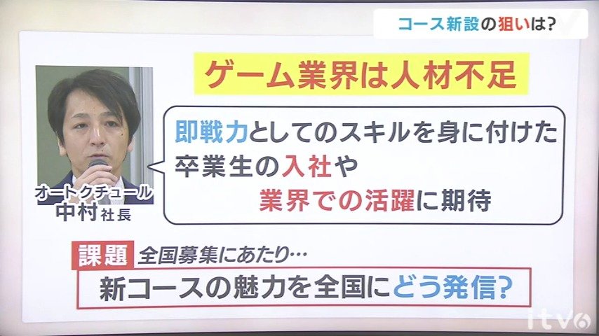 ゲーム業界は人材不足に直面しているそうで、オートクチュールの中村社長は、即戦力としてのスキルを身につけた卒業生の入社や業界での活躍に期待を寄せています。