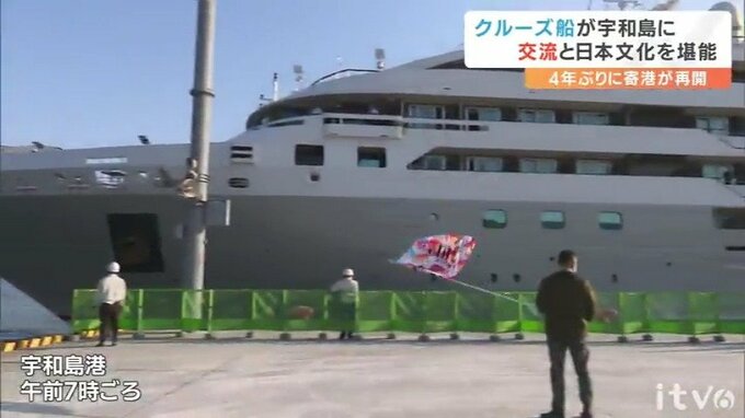 愛媛・宇和島港にクルーズ船が寄港 ツアー客は地元中学生と交流も 2023年5月2日(火) 20:22 国内 愛媛県宇和島港に2日、外国からのクルーズ船が寄港し、ツアー客と地元の中学生が交流するなどしました。朝7時頃、大漁旗の出迎えを受けながら宇和島港に入ったのは、フランスのクルーズ船、「ル・ソレアル」…