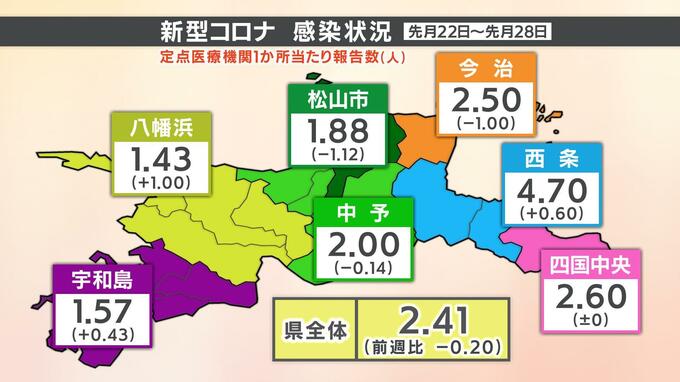 愛媛県新型コロナ感染者数 5月28日までの1週間は前週と横ばい 2023年6月2日(金) 16:26 国内 愛媛県は、先月28日までの1週間の新型コロナの感染状況を発表しました。定点医療機関からの感染報告は、前の週と横ばいで推移しています。先月28日までの1週間、県内61の定点医療機関1か所あたりから報告され…