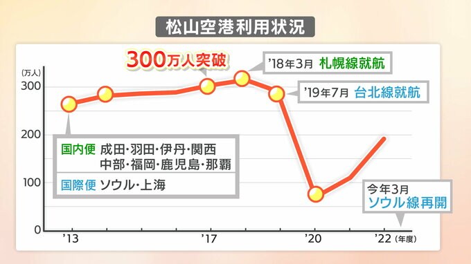 成田線が就航した2013年度、松山空港全体でおよそ262万2000人が利用していました。