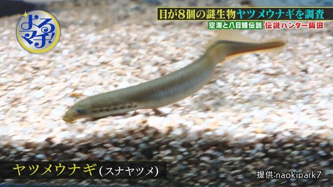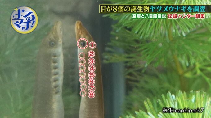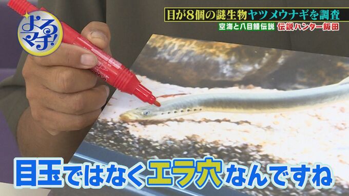 「実は本当の目は1つだけなんですね。あとの7個は目玉ではなく呼吸をするためのエラ穴なんですね。エラ穴が7個と目が1個。それが8個の目のように見えるのでヤツメウナギ」