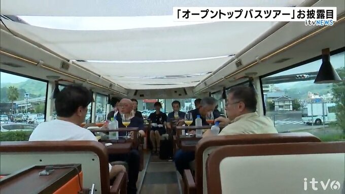 「オープントップバス」で景色楽しみながら“食と観光”満喫 愛媛県が周遊ツアーを実施 2023年9月17日(日) 18:22 国内 天井が開く「オープントップバス」による愛媛県内観光ツアーがお披露目され、参加者がその魅力を体感しました。愛媛への誘客を図ろうと企画されたこのツアーのお披露目には、経済団体の役員など約20人が参加し…