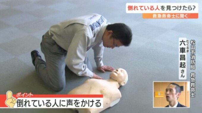 今回のように倒れている人を見つけたらどう対応すればいいのか、松山市消防局の救急救命士に聞きました。