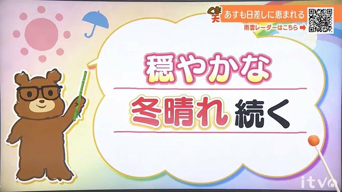 28日(木)も穏やかな冬晴れ続く 気象予報士が解説 2023年12月27日(水) 18:34 国内 気象予報士の竹之熊和也が徹底解説!"くま天"<28日(木)の天気ポイント>穏やかな冬晴れ続く<28日(木)の天気>高気圧におおわれて、おおむね晴れる見込みです。夜に多少雲がかかりますが、天気の崩れはなさそうで…