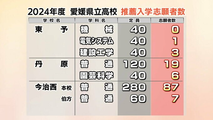 2024年度愛媛県立高校 推薦入試志願者数 全校掲載