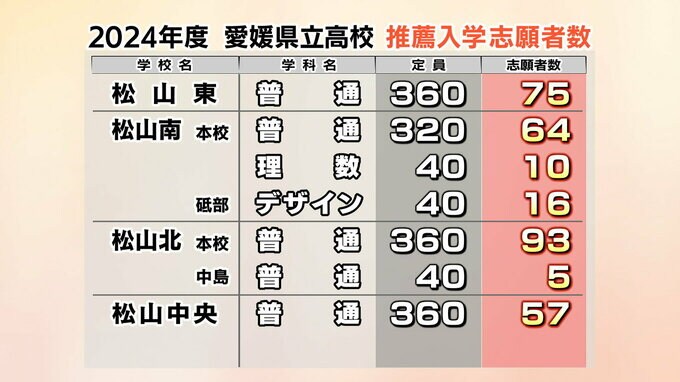 2024年度愛媛県立高校 推薦入試志願者数 全校掲載