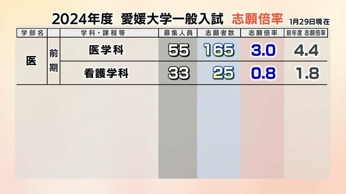 3. 愛媛大学一般入試 1月29日時点の志願倍率