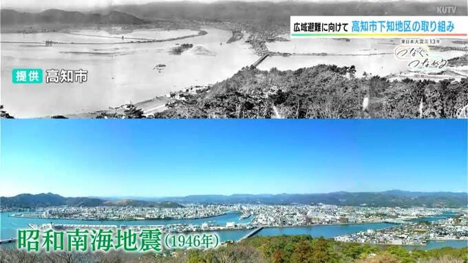 1946年の昭和南海地震で、下知地区は広く浸水しました。南海トラフ地震でも5メートルの浸水が想定されていて、浸水による復旧・復興の長期化は避けられません。