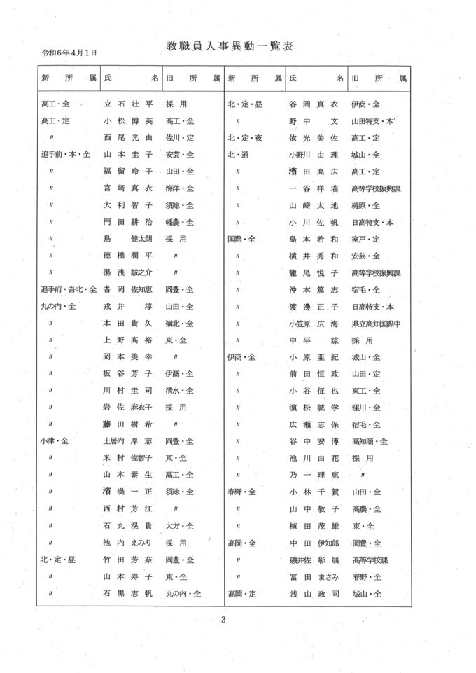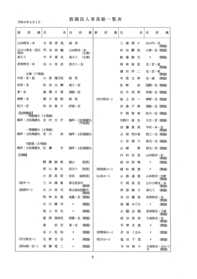 高知県 教職員人事異動情報②「あの先生、どこ行くがやろ?」(県立中学校・県立高校・特別支援学校など)