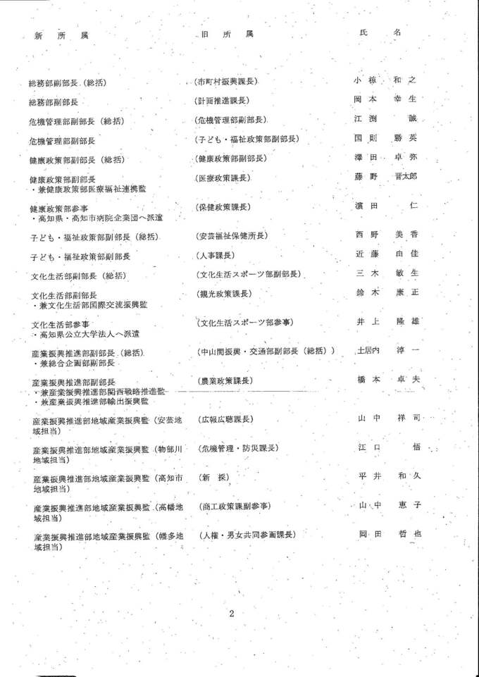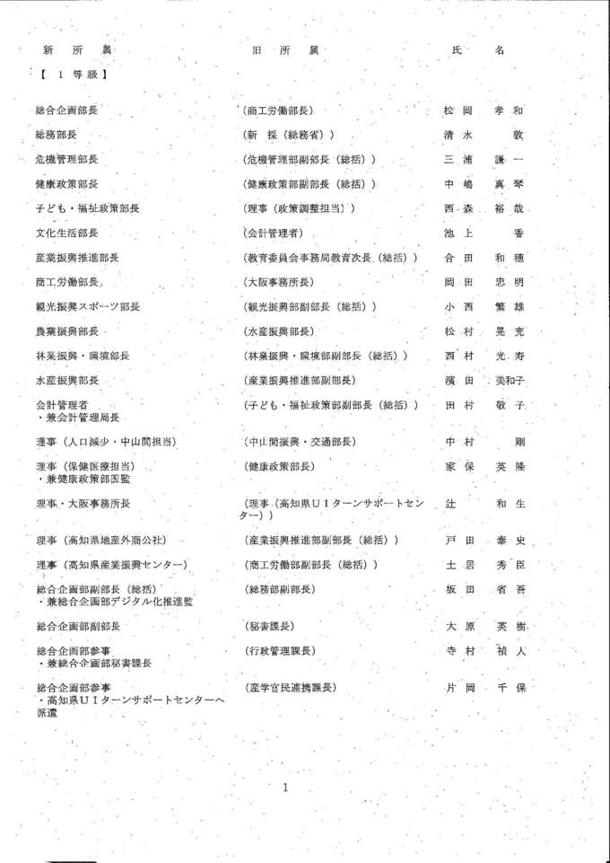 高知県人事異動2024(知事部局)③課長・室長補佐、チーフ級