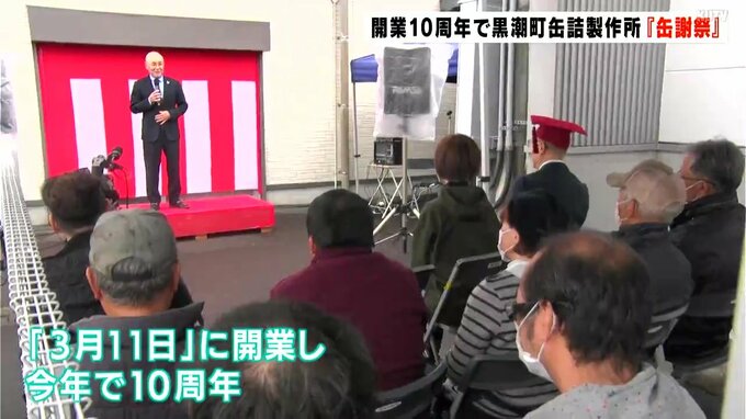 黒潮町入野にある「黒潮町缶詰製作所」は南海トラフ地震発生時に最大34メートルの津波が到達する想定を受け、非常食にもなる缶詰の製造を地元の産業にしようと町などが出資して設立されました。東日本大震災の被害を記憶に留め、防災意識を高めようと、2014年の“3月11日”に開業し今年で10周年を迎えました。