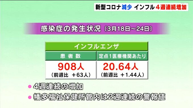 高知県内感染症発生状況 新型コロナ減少・インフルエンザは4週連続で増加 2024年3月28日(木) 12:01 国内 コロナ 3月24日までの一週間の感染症の動向が発表されました。新型コロナは減少、インフルエンザは4週連続で増加しました。高知県によりますと3月18日から24日までの一週間に、県内44の定点医療機関で194人の感染が報告さ…