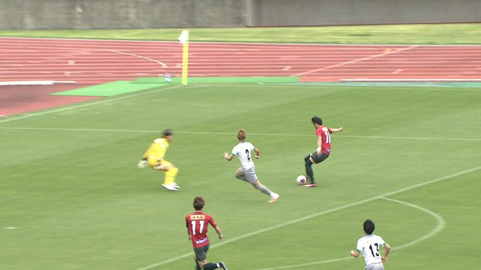 エンドが変わった後も再三、相手陣内に攻め込む高知は、後半20分、右サイドから18番東家(とうや)が右足でしっかりと決め2点目を奪います。