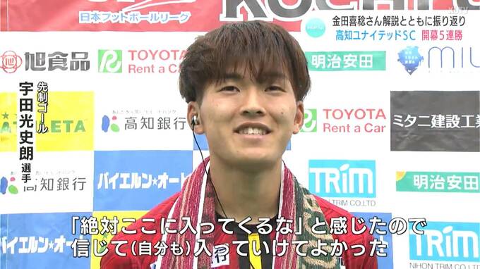 「ここでホイッスルです。試合終了、高知ユナイテッドSC、勢いにのって開幕5連勝!」