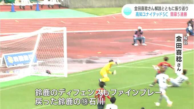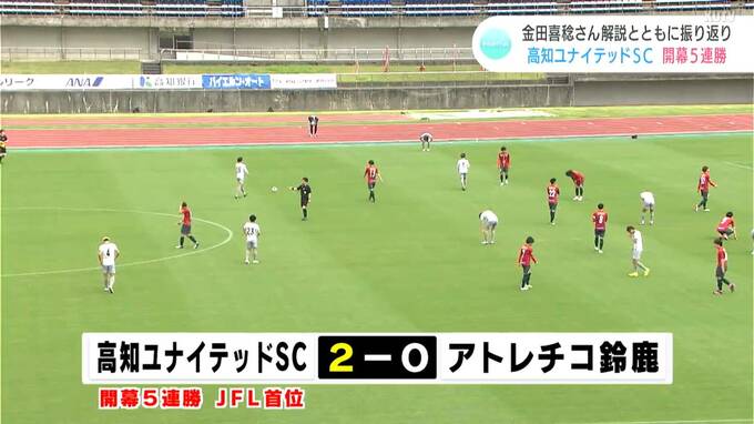 サッカー・JFL、高知ユナイテッドSCが7日のゲームで勝ち“開幕5連勝”。現在、首位を独走中です。7日の生中継に出演してくださった元・日本代表金田喜稔(かねだ・のぶとし)さんの解説とともに、ゲームを振り返ります!