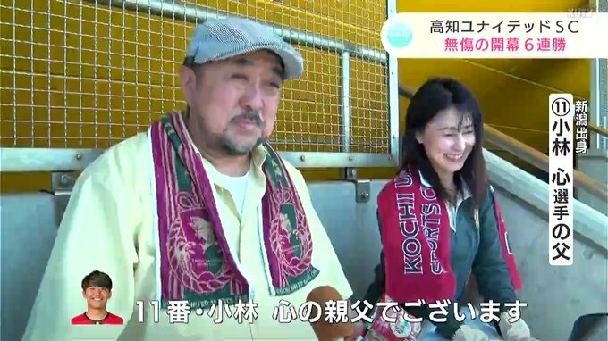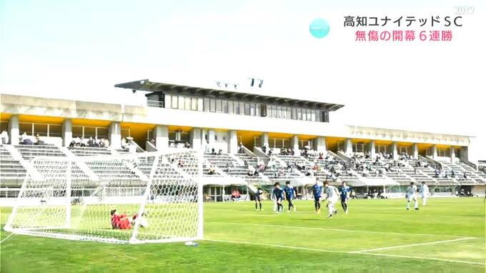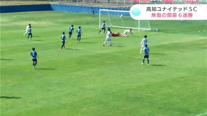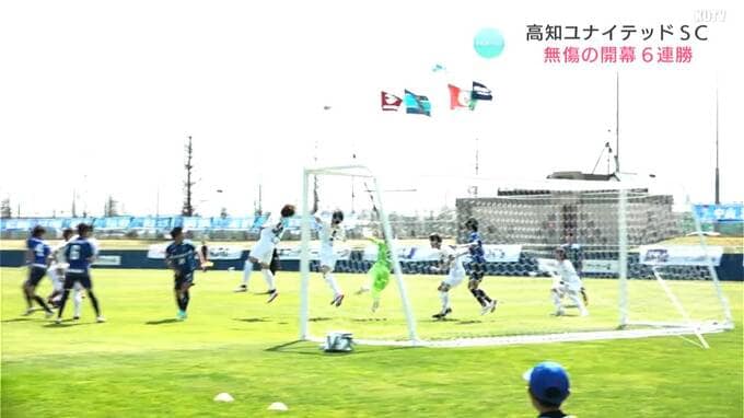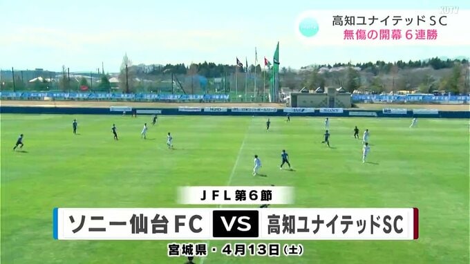 サッカー・JFL高知ユナイテッドSCの勢いが止まりません!13日の試合にも勝ち、開幕から無傷の“6連勝”です!アウェー・宮城で、フォワード・小林心(こばやし・こころ)選手の2ゴールで勝利!悲願の“J3”に向け、首位を独走中です!