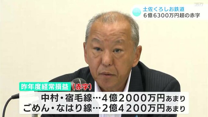 土佐くろしお鉄道によりますと2023年度の経常損益は中村・宿毛線で4億2000万円あまり、ごめん・なはり線で2億4200万円あまりの赤字と、会社全体の赤字は6億6300万円を超えましたが、一昨年度に比べて3400万円余り縮小しました。