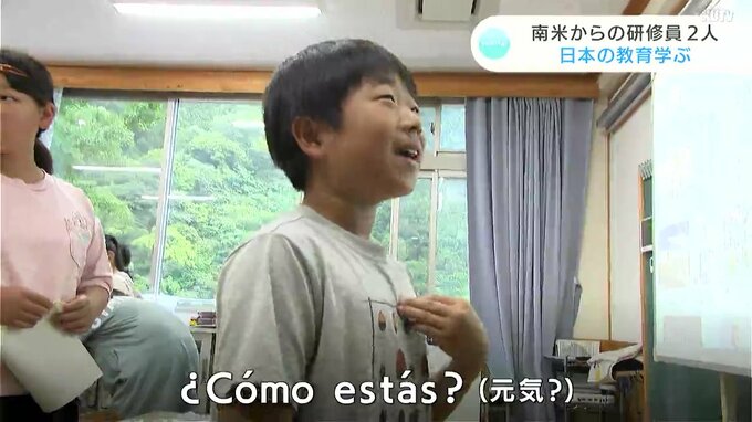 高知市の土佐山学舎を訪れたのは、南米のボリビアとアルゼンチンからきたJICA研修員の2人です。2人は現地で日本語の教師をしていて、5月20日からJICAが実施する日本語教育向上のためのプログラムに参加しています。31日は自分たちの国についてクイズ形式で紹介したほか、母国語のスペイン語を使って児童たちと挨拶をするなど交流を深めました。