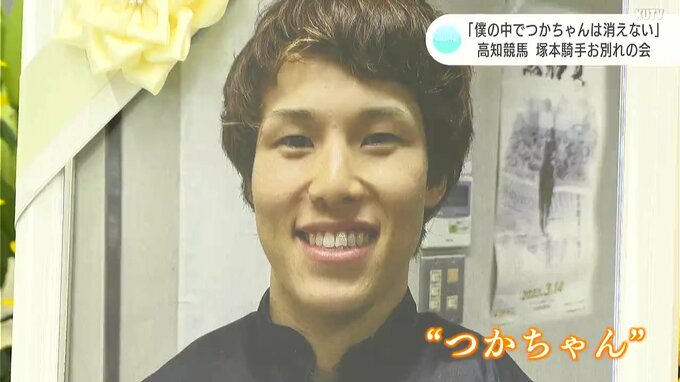 「僕の中でつかちゃんは消えない」勝負服に合わせたひまわりの花で 高知競馬 塚本雄大騎手お別れの会 2024年5月31日(金) 18:38 国内 2024年3月、高知競馬のレース中に落馬し亡くなった塚本雄大(つかもと・ゆうだい)騎手のお別れの会が開かれました。騎手や調教師ら関係者が参列し、塚本騎手をしのびました。高知競馬の塚本雄大騎手は3月24日のレ…