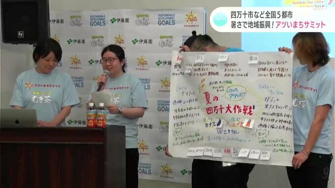 アツいまちサミットは、一般社団法人アツいまちと飲料メーカーの伊藤園、過去に国内最高気温を観測した全国5つの暑さ対策先進都市が連携し、地域資源を活かした暑さ対策を全国に発信しようと毎年開いています。このうち2013年に江川崎で当時の国内最高気温41度を観測した四万十市は、「いろいろアツいぜ夏の四万十大作戦」と題し、体を冷やす効果があるとされる特産の米ナスを活用した取り組みを報告。小・中学校の給食の食材に米ナスを使用したり、米ナス日本一をハッシュタグにしたSNSキャンペーンを実施したりしました。8月には夏フェスならぬ「ナスフェス」を開催し、西土佐の暑さ対策と共に地域をPRする予定です。