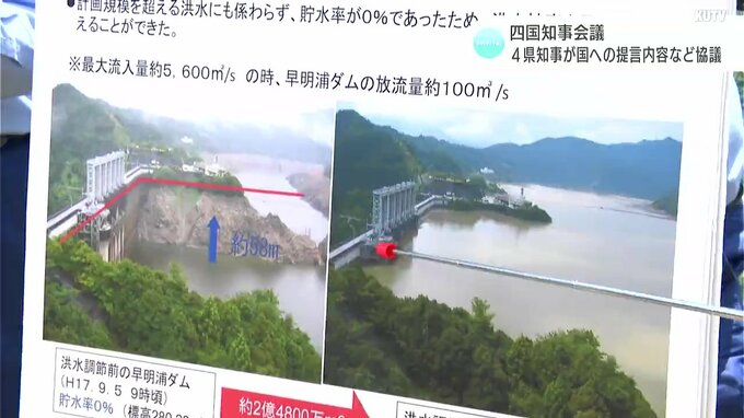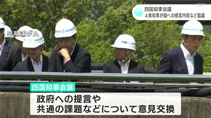 会議を前に高知県土佐町の早明浦ダムを訪れた知事らは、現在行われている放流能力を強化する工事について説明を受け、「四国の水がめ」の役割や水害対策の重要性などを改めて確認していました。