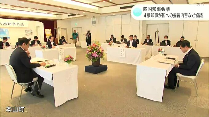 四国4県の知事が共通の課題などについて意見を交わす四国知事会議が高知県本山町で開かれ、災害対策や人口減少対策について国に一層の支援を求めていくことなどを確認しました。