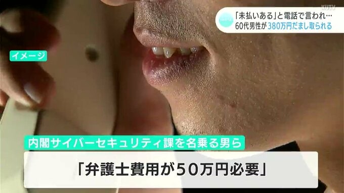 男性が電子マネーを購入し番号を伝えたところ、今度は、内閣サイバーセキュリティ課や証人保護協会を名乗る男から「あなたの携帯電話から個人情報が抜かれ、損害を受けている人がいて裁判になる」「弁護士費用が50万円必要」などと電話で言われ、男性は電子マネーを購入したり現金を送金したりしました。