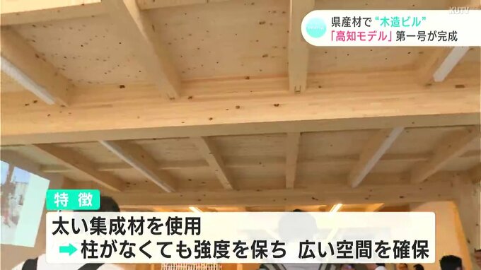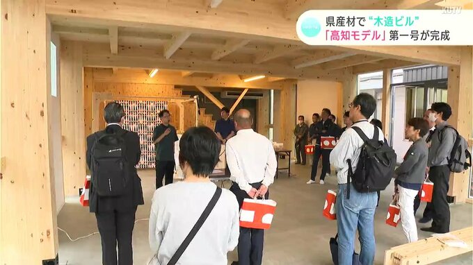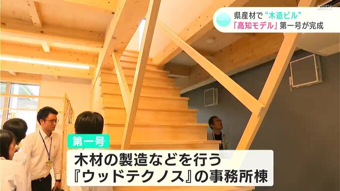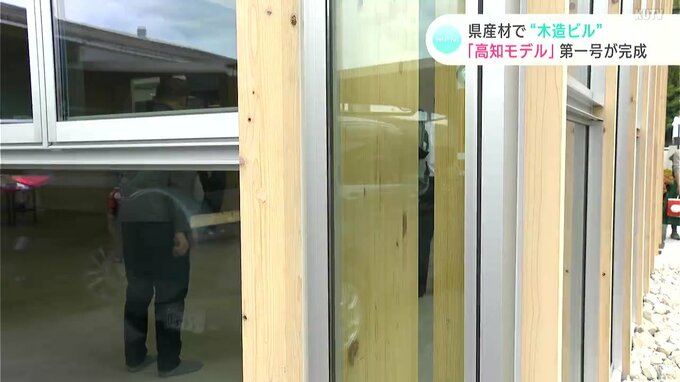 県や高知県木材協会などが、県産材の集成材を使用した木造ビルの「高知モデル」として3年ほど前から開発を進めていて、このほど、木材の製造などを行う「ウッドテクノス」の事務所棟が第一号として完成しました。