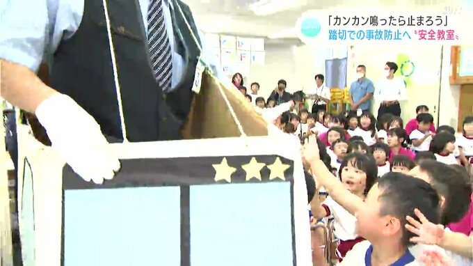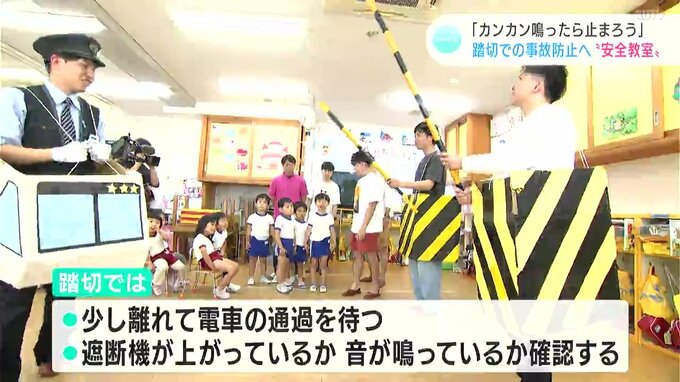線路や踏切近くでの子どもたちの事故を防ごうと、高知市の認定こども園で『安全教室』が開かれ、子どもたちが踏切の安全な渡り方を学びました。
