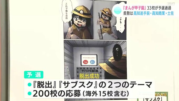14日は予選審査が行われ、33校の通過が決定。このうち県勢は、高知追手前高校、高知商業高校、土佐高校の3校が予選を通過しました。2024年の作品について審査員からは、「分かりやすさが欲しい」など厳しい意見が多くあがりましたが、未来の漫画家たちに期待も寄せていました。
