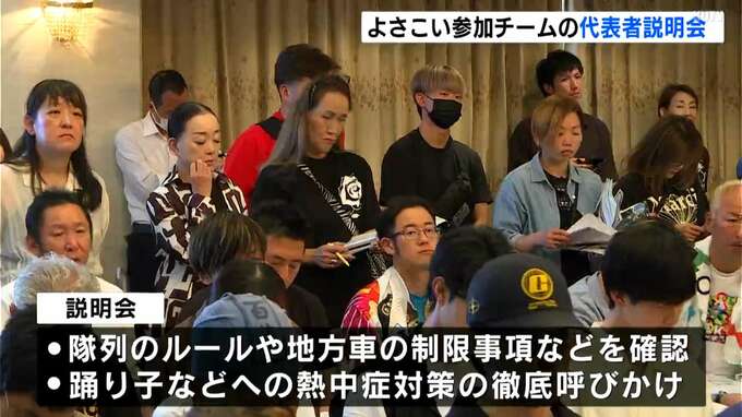よさこい祭りまで2か月を切る 参加チームの代表者説明会 2024年6月15日(土) 18:00 国内 よさこい祭りまであと2か月を切りました。きょうは参加チームの代表者への説明会が行われました。今年のよさこい祭りには、去年よりも31チーム多い188チームが参加を申し込んでいます。15日の説明会にはチームのほ…