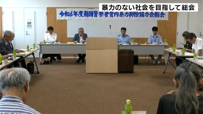 暴力のない安全で安心な住みやすい社会を目指す「南国警察署管内暴力排除協力会」の総会には、協力会のメンバーや警察官ら34人が参加しました。総会では県内の暴力団の現状報告のほか、「暴力団を恐れない・暴力団に金を出さない・暴力団を利用しない・暴力団と交際しない」という『暴力追放宣言』が行われました。県警によりますと、2024年5月末時点で県内にはおよそ9つの暴力団組織とおよそ40人の構成員がいて減少傾向にありますが、最近はSNSなどを使った特殊詐欺にも、暴力団組織の関与が疑われているということです。