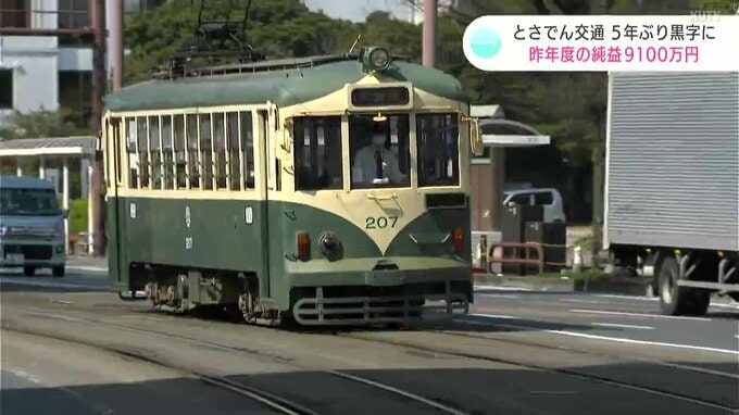 とさでん交通が2023年度の決算を発表し、5年ぶりに純損益が9100万円の黒字になったことがわかりました。