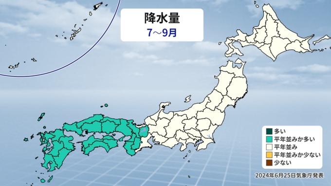 降水量は西日本で平年よりも多くなる可能性が高いでしょう。また、1か月予報や3か月予報といった長期予報では、突発的な現象である台風を考慮していないので、台風が発生し接近・上陸することがあれば、より降水量は増えます。梅雨の時期はまだまだ続きますが、梅雨が明けても雨への警戒は緩めることはできなさそうです。