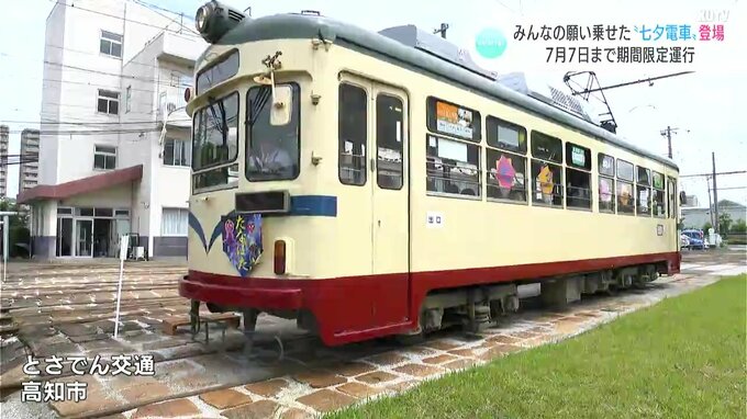 とさでん交通は路面電車を利用する人に七夕を感じてもらおうと、2022年から電車内に願い事が書かれた短冊を飾り付けるイベントを行っています。