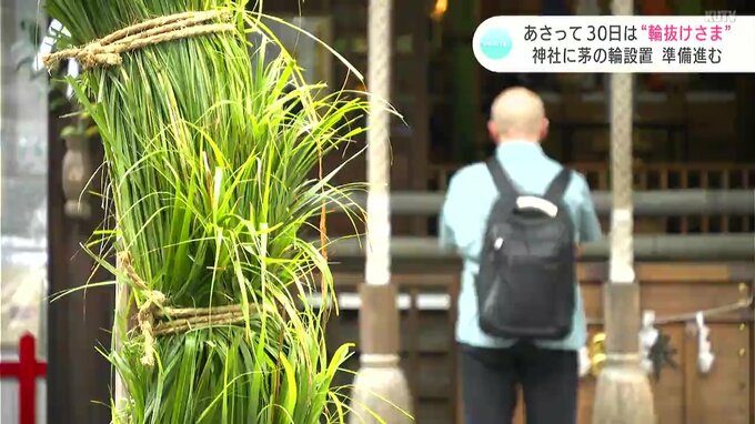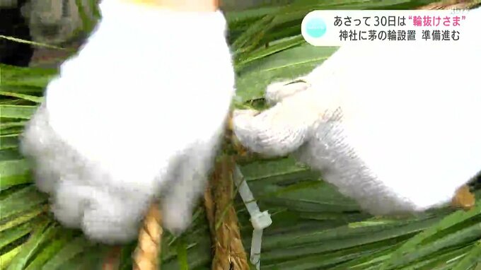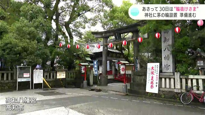 30日に行われる「輪抜けさま」を前に、高知市の神社で茅の輪の設置作業が行われました。