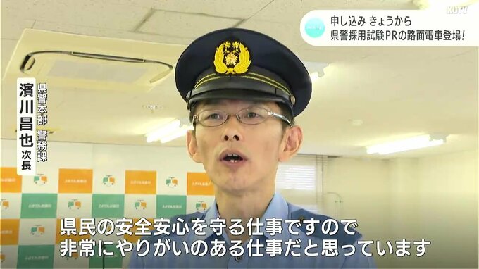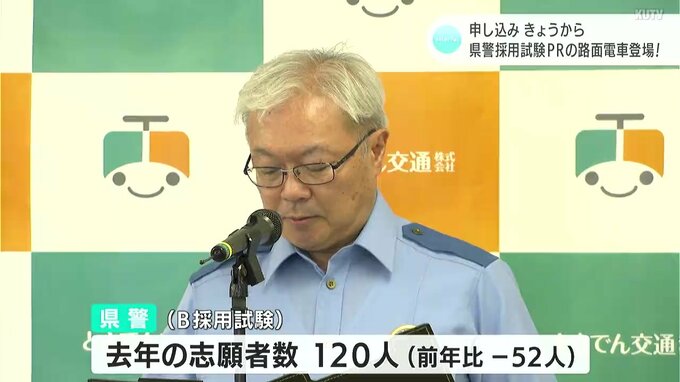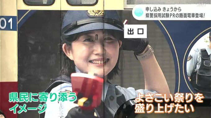 高知県警では少子化などの影響で志願者数が減少傾向にあり、2023年の応募者数は2022年より52人減少しています。このため路面電車を通して、通学で利用する高校生などに警察官の仕事をPRする狙いがあります。