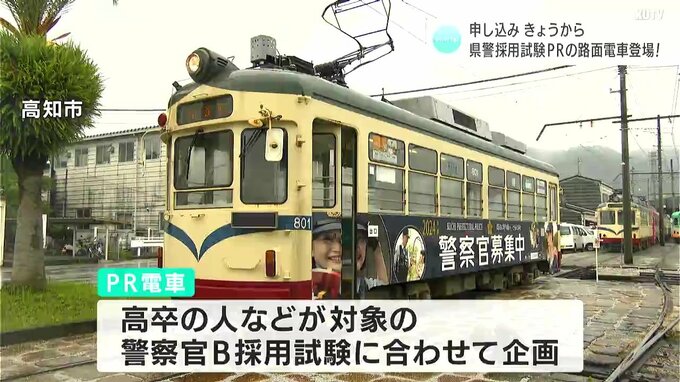 1日から申し込みが始まった高知県警の採用試験をPRする路面電車の出発式が行われました。