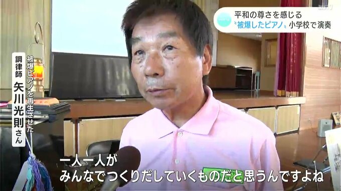 高知県四万十市の竹島小学校に運び込まれたのは広島に投下された原爆で被爆したピアノ。傷だらけになり音も出ない状態でしたが、平和の尊さを考えるきっかけにしてもらおうとピアノの調律師、矢川光則さんが再生させました。
