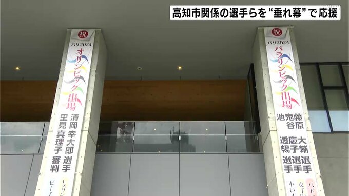 高知市出身のパリオリンピック、パラリンピックの選手らを、市全体で応援しようと、高知市役所に初めて、垂れ幕が設置されています。