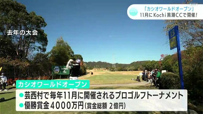 カシオワールドオープンは11月21日から24日までの4日間、芸西村のKochi黒潮カントリークラブで開催します。