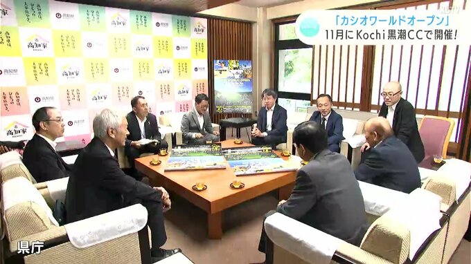 男子プロゴルフツアー「カシオワールドオープン」の開催を大会関係者らが濵田知事に報告しました。