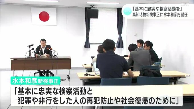 高知地方検察庁のトップにあたる検事正に水本和彦(みずもと・かずひこ)氏が新たに就任し、「基本に忠実な検察活動をしていく」と抱負を語りました。