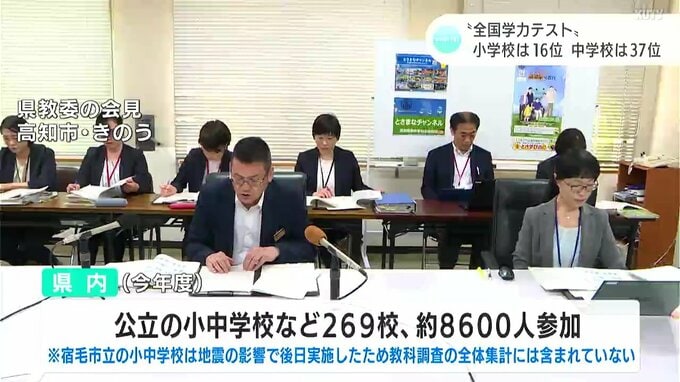 2024年度県内では、公立の小中学校など合わせて269校およそ8600人が参加しました。※宿毛市立の小中学校は4月17日に起きた地震の影響で後日実施したため、教科調査の全体集計には含まれず。