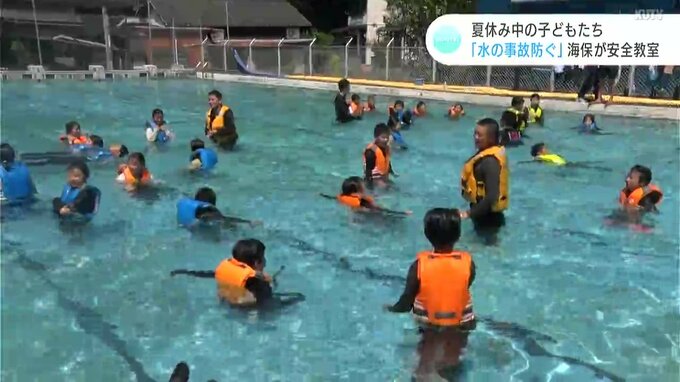 高知県宿毛市の小学校では、水の事故の防止に向けた安全教室が開かれました。先生は宿毛海上保安署の職員たちで、子どもたちは、体を浮かせる方法などを学びました。