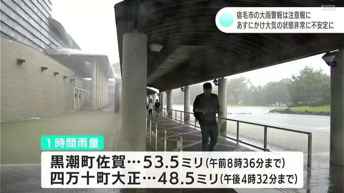 これまでに観測された1時間雨量は、高知県黒潮町佐賀で午前8時36分までに53.5ミリ、高知県四万十町大正で午後4時半ごろまでに48.5ミリ、香美市繁藤で午後5時19分までに44ミリとなっています。